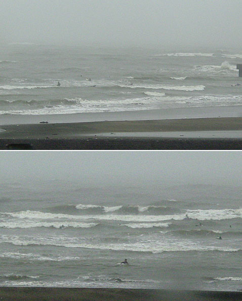 おはようございます。 肌寒い朝です。オンショアですが、腰前後のうねりはあるのでサーフィン出来ています。今日は一日東よりの風の予報です。 迷わずサーフィンしましょう。