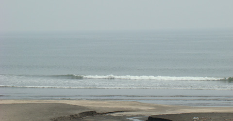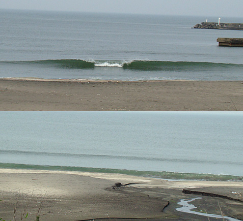 うねりますが満ちのこの時間は乗れそうに無いです。堤防横のこのブレイクはほんの一瞬です。