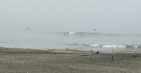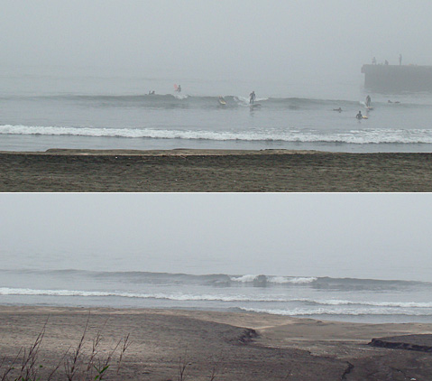 お昼頃からスクールで真っ白な霧の中へ入っていくと、15人ほどのサーファーが楽しんでいました。