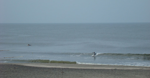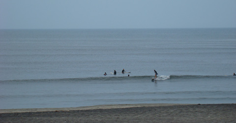 風はほぼ無風の南西でロングボードにはそこそこ遊べそうな波です。