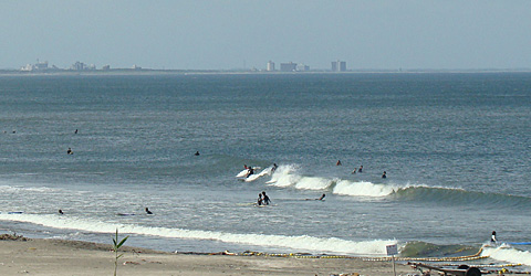 志田側堤防付近は腰くらいの波われていてショートボードでも全然出来ます![]()