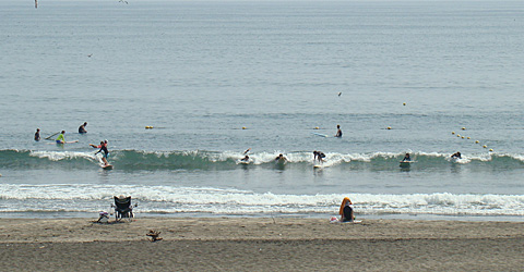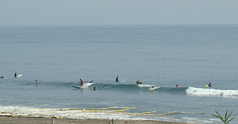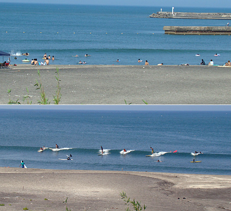 波はサイズ小さめですが、ロングボードなら充分いけます。