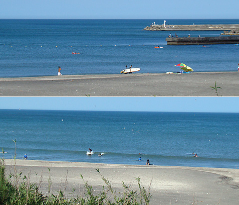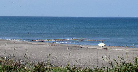 9時すぎですが海水浴エリア規制前の最後の堤防横ライドです。