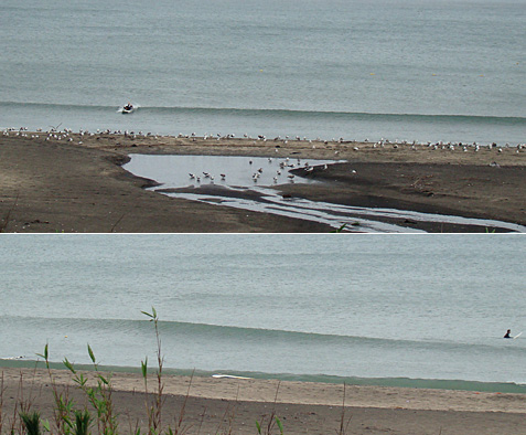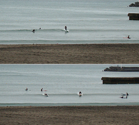 その時間は堤防横はサーフィン可!に。