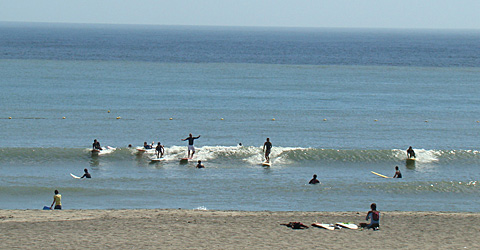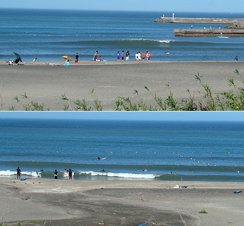 海水浴エリア規制前の写真ですが、形のいい波割れています。