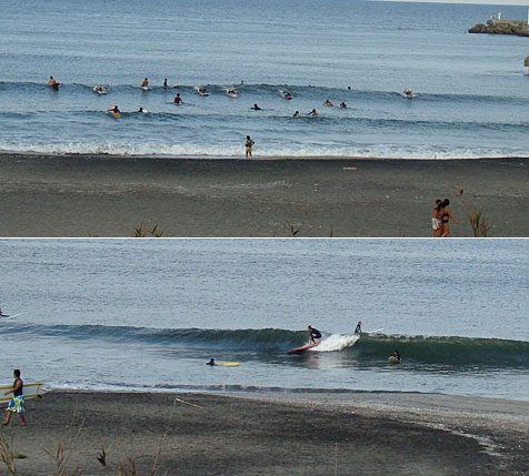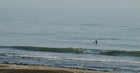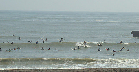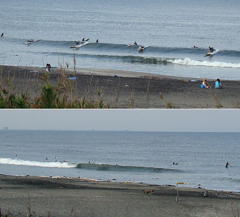 堤防横は厚い波ですが、正面、シーイーグル前は早いながらも