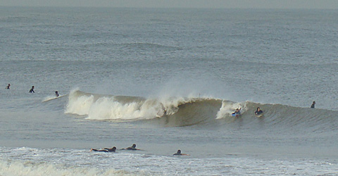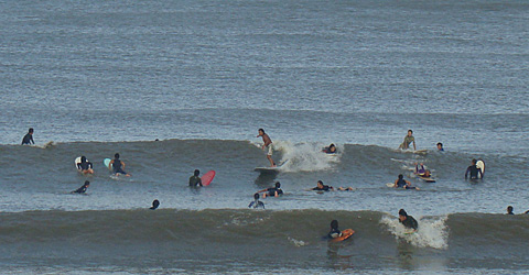 弱い南西風でうねりが綺麗にラインナップ。