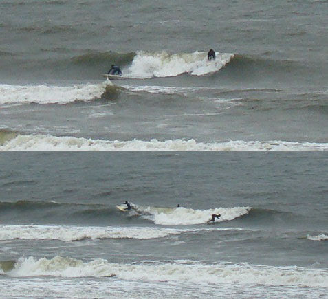 もう雨は降り出しています。長めの板にはちょっと難しい波です。