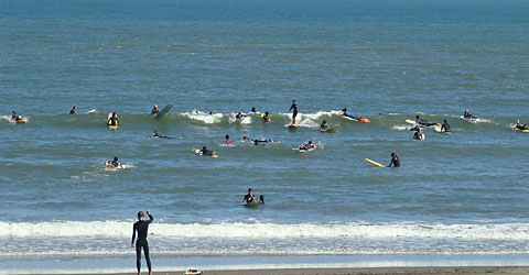 風はゆるい南東、連休終わりの夕方の海は、なぜかスローで