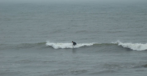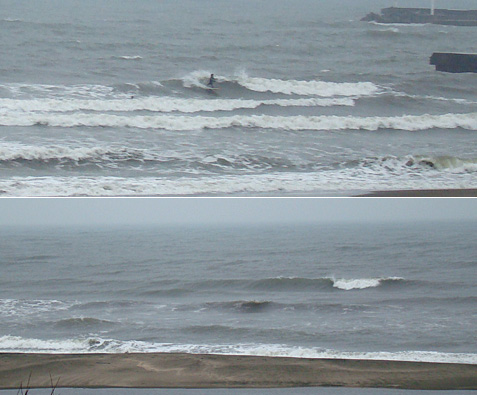 今も小雨、北北東の風ですが、充分に出来る波が余っています。