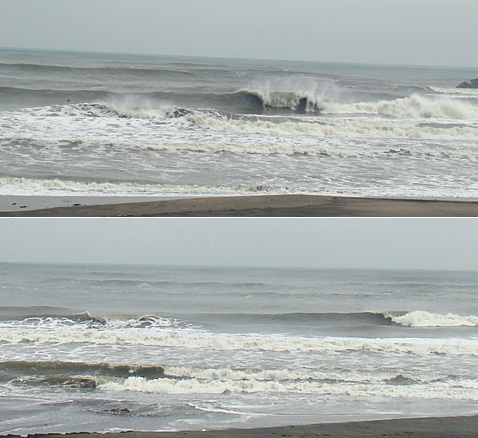 太東名物バックオッシュからのテイクオフを楽しむサーファーも多いです。