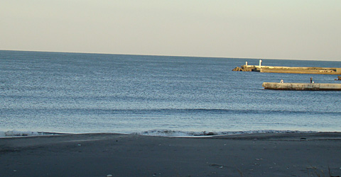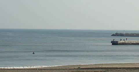 空気も澄んで来るとブレイクの後ろに見えてくるホテル達。湾曲した九十九里海岸らしい風景。