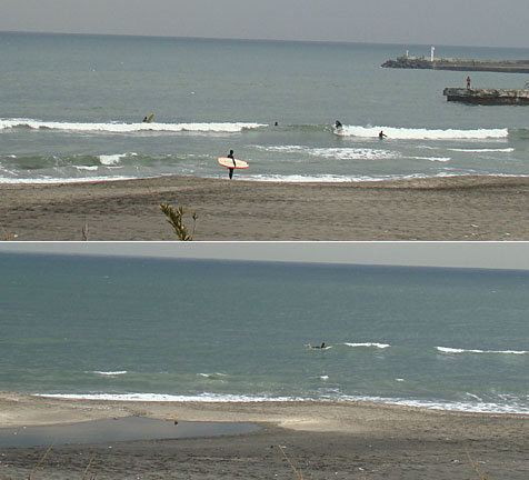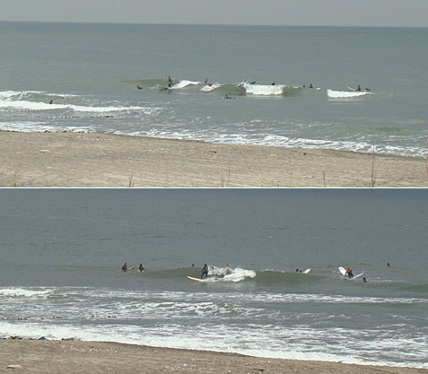 想像すると楽しいですよ。上級者は波の形やブレイク後のスープで海底の深さが把握できます。