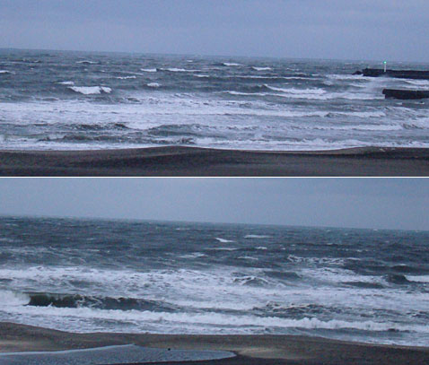 お昼前から強く吹き始めた北北東の風で、すっかり景色は変わりました。