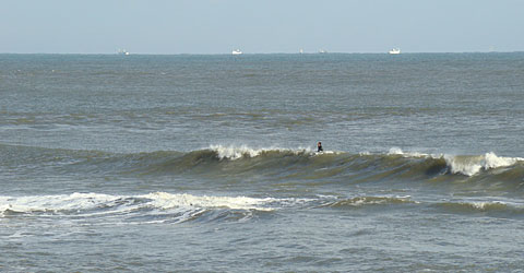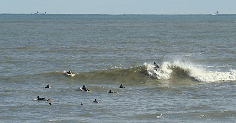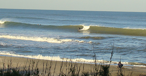 堤防横はクリーンなバックオッシュを常連サーファーが楽しんでいます。