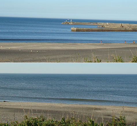 今日海水浴シーズンの監視業務の方に水温の話をしたところ、彼が知るかぎり夏の最低温度は15℃だとの事。これ以上南風が吹き続いててもこれが下限って事です。