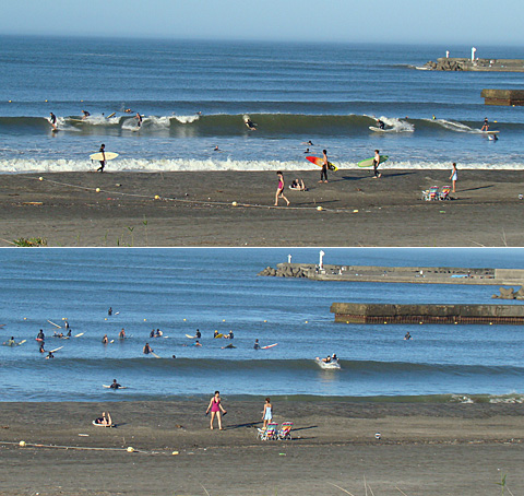 混雑気味なのでルールを守って怪我なく波乗りしましょう。