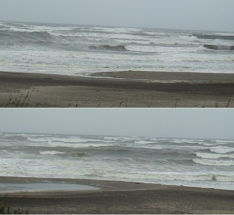 強い北東風でグチャグチャです。