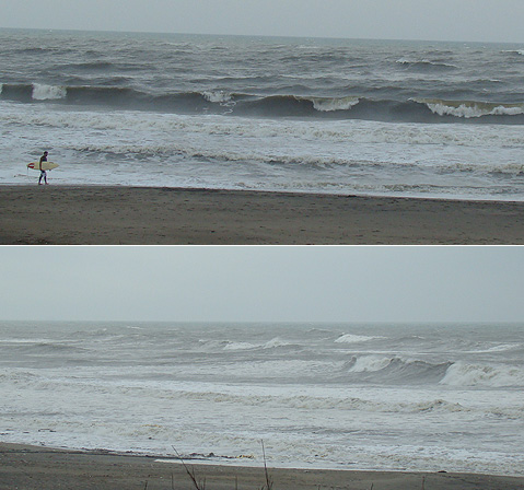 | 天候 | 曇/雨 | 風向き | 北東 | 波サイズ | ムネ-カタ | スーツ | シーガル |