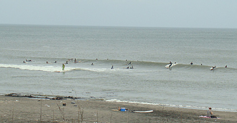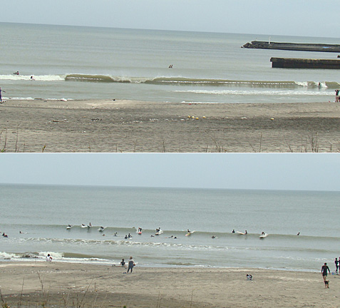 正面に居た10人ほどのロングボーダーはそれでも岸よりまでTRYしていました。