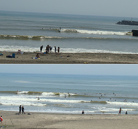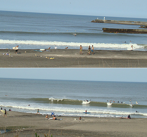 夕方遅く、きっと6時すぎの堤防横はロングボーダーが良さそうなのテイクオフ出来ていました。