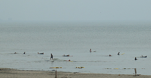 | 天候 | 曇/雨 | 風向き | 北東 | 波サイズ | フラット-ヒザ | スーツ | シーガル |