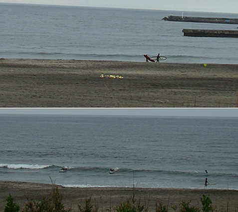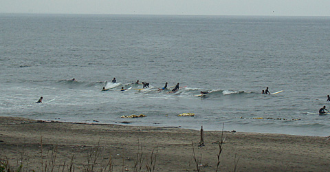 波は小さく、ロングボードでなんとかできる程度。