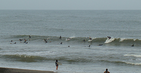 少し潮が多いのか、波に力がないのか、堤防横はセット以外はインサイドまでブレイク
