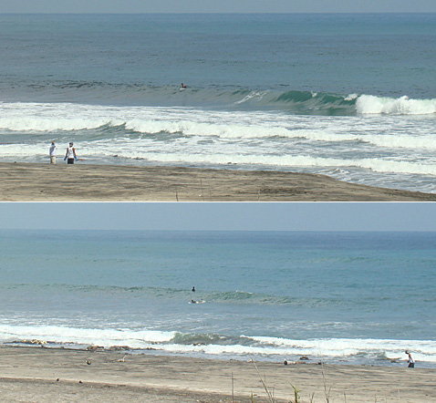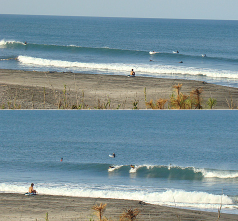 岸よりで割れるブレイクはバックオッシュも加わり、緩斜面のまま一気にドンと割れます。