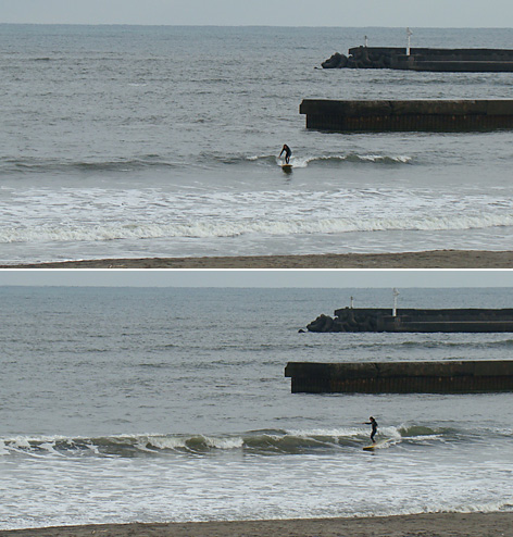 セットを待てば乗れそうな波もブレイクします。