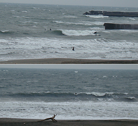 堤防横もこのコンディションの変化にも関わらずサーファーはいます。