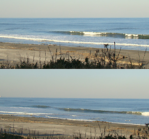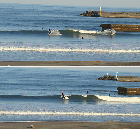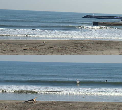 ワイドな波が続いている太東でも、このサイズのうねりがあれば、引いている時間を