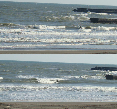 風で崩れた波でも乗り継いで行く事が出来ています。