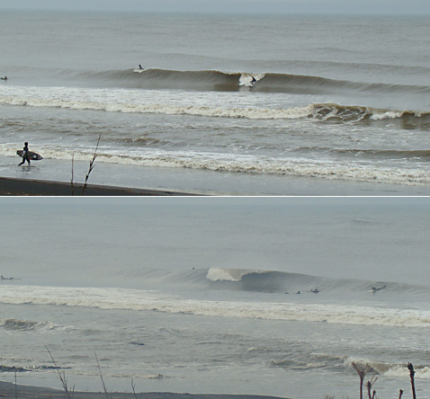 ここも風が入っていますが、まだターンできるフェイスがわかる波です。