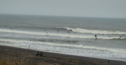 昨日から南よりの風向きのおかげでサーファーは増えて、裸足の人も見ます。