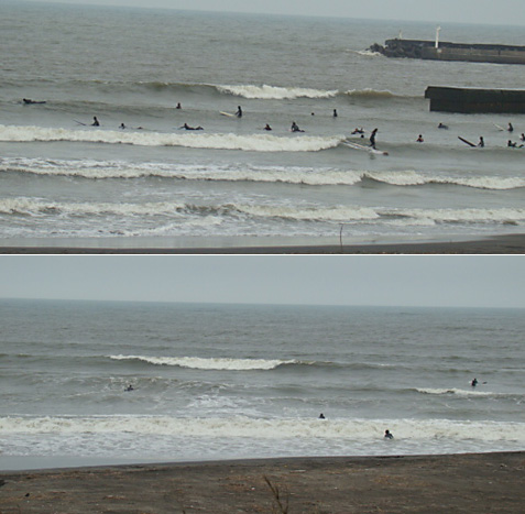 南からのうねりで堤防横はうねりをキャッチし難い感じです。