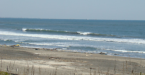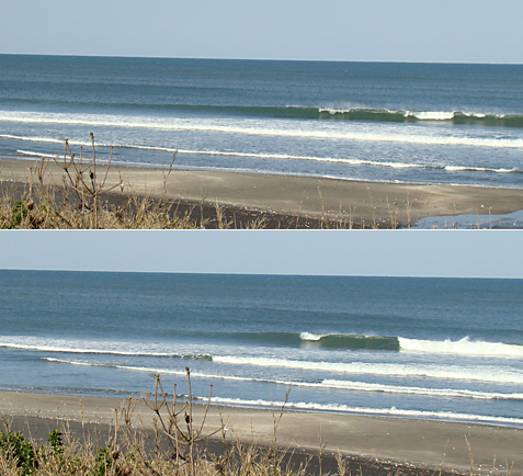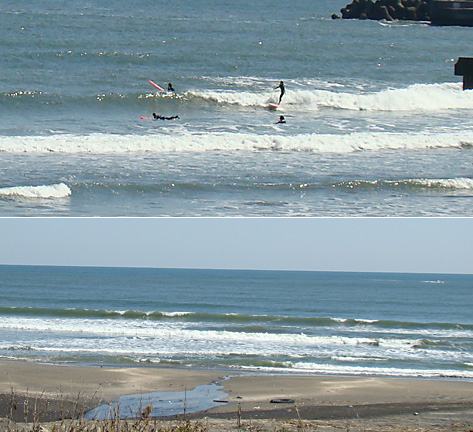 全体的にうねりはワイドで、堤防横はかろうじてバックオッシュからのテイクフだと