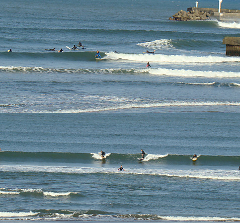 ミドルサイズ以下でも引いていれば、しっかり楽しめます。ただここにウエィティングするにはセットを良く観察して、乗る人の邪魔にならない事が前提です。波が読めないと事故になります。