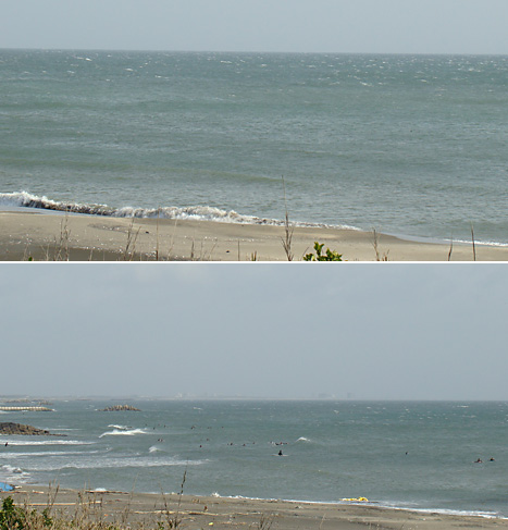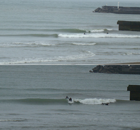 ここは志田?すんごい南からのうねりで、このアングルで北へブレイクして行きます。