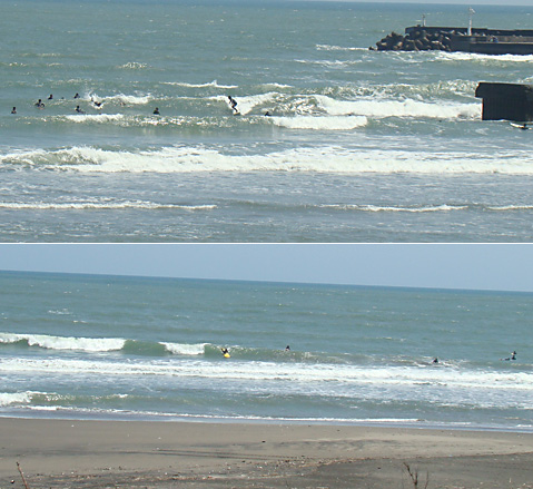 波はまだサイズをキープしていて、堤防横は9時の引き前後から
