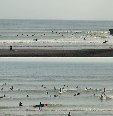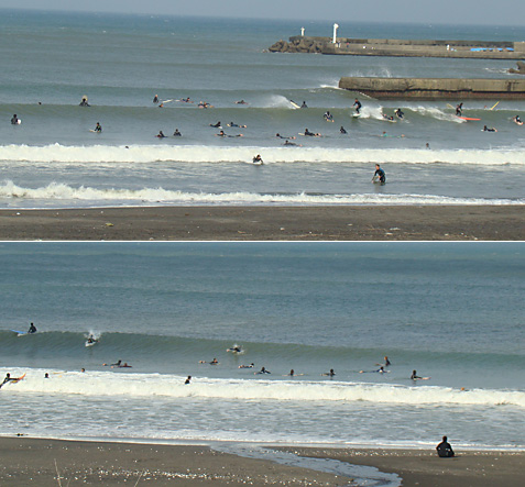 今(5時前)は更に満ちていて、なかなかブレイクしない波になっています。