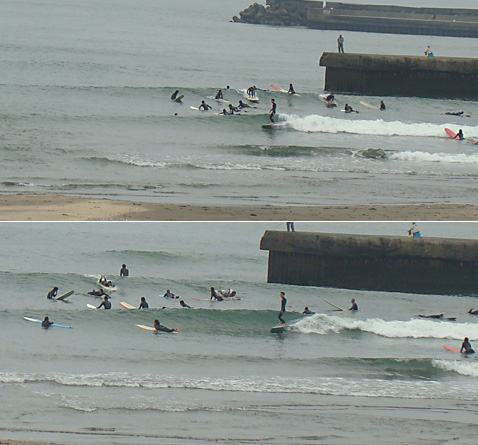 しかしうねりはこの浅さで割れるのにギリギリな状態です。