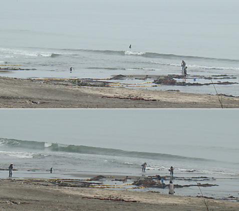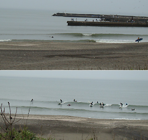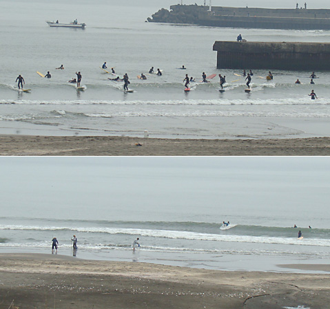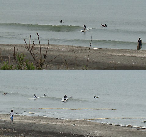 このつながった波にいち早くテイクオフして、ターンできればたいしたものです。