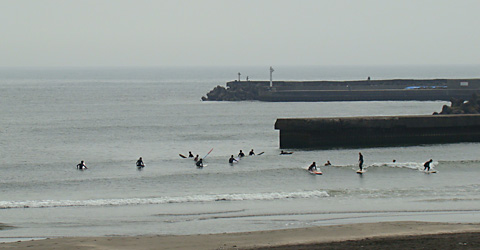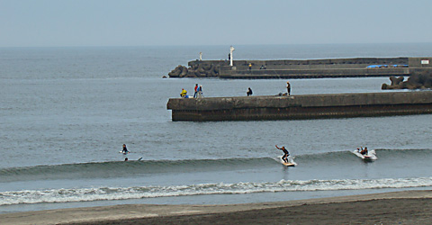 太東堤防付近、波のサイズは小さいですが