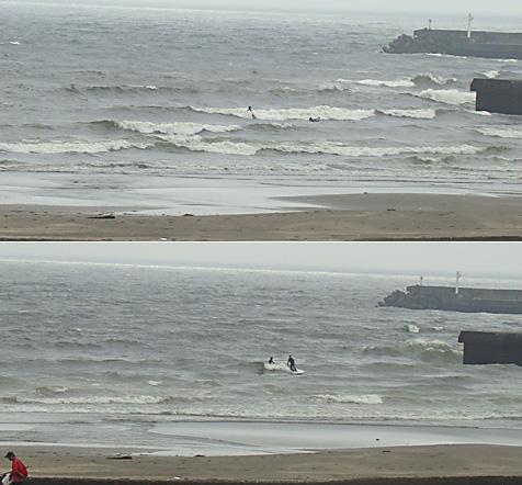 海面悪く、フェイスの張らない波でテイクオフができる程度。