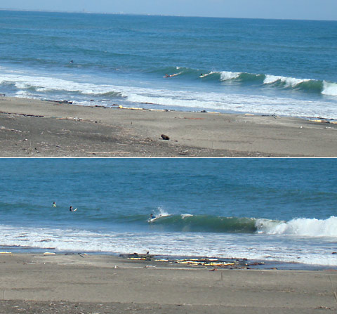 しかし、その中でも行けそうな波には確実にサーファーがアタックしてます。