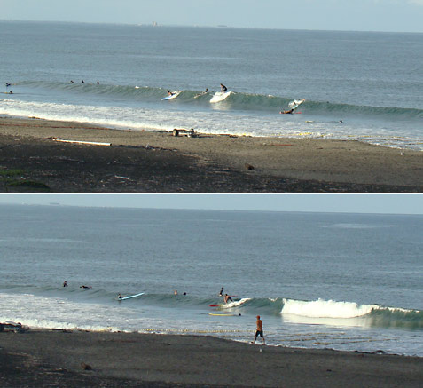セットとバックオッシュが重なると、相当のサーファーが刺さっています。。。