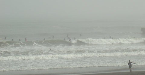 今日は水温が温かく、まだトランクスだけのサーファーが見れました。