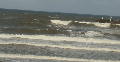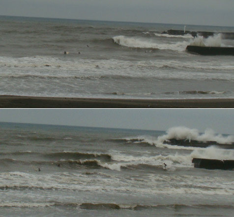 堤防アウトのピークが乗りやすいですが、堤防より岸よりのピークではなかなかホローする波が多いです。