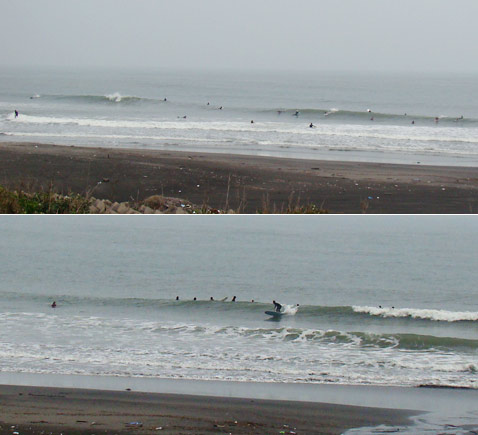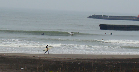 サーファーは堤防横に集まっていました。